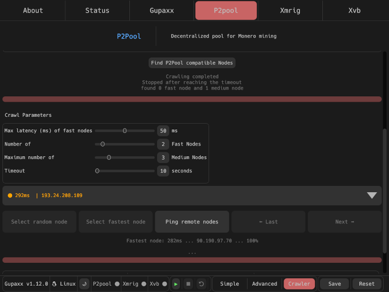To find P2Pool compatible public Monero nodes use the crawler tool in Gupaxx